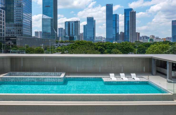 奢级标配,水深约1.5米泳池,星幕之下,卸下身上的烦恼,近观满庭绿意;极目远眺,饱览城市繁华天际。