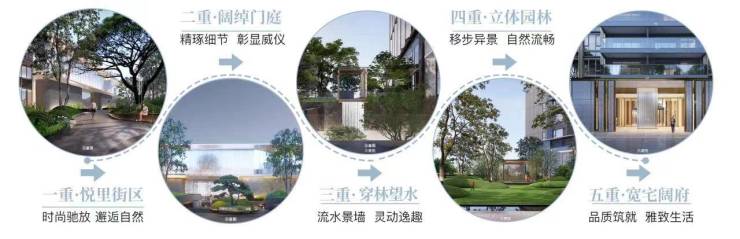 悦里街区、阔绰门庭、穿林望水、立体园林、宽宅阔府、层层递进,提升归家的仪式感与归属感。