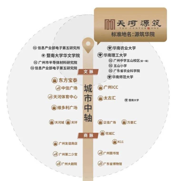 世纪金源天河源筑位于天河区东莞庄路,坐落在华工、华师、华农等高校环绕的区域,距离珠江新城约4.5公里,驾车15分钟可达 。