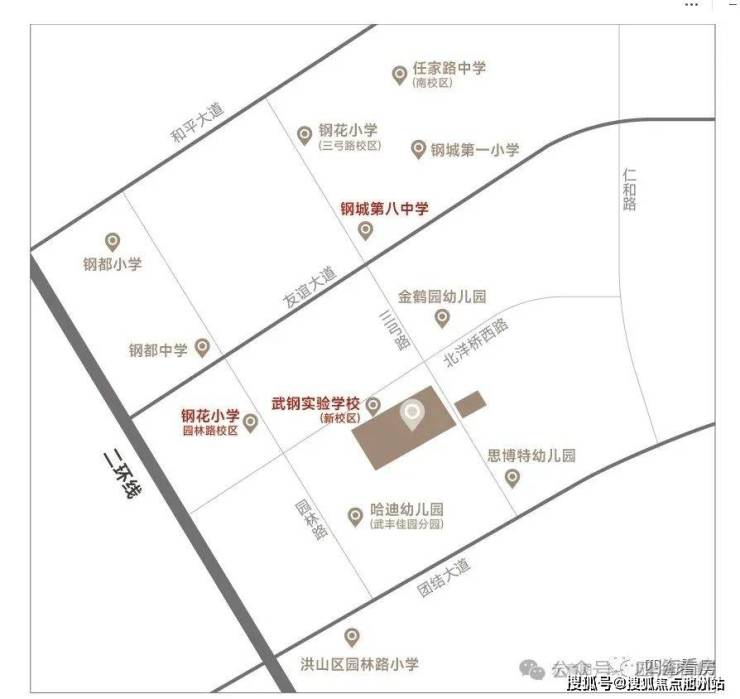 小区附近还有钢花小学和钢城八中,这两个学校都是青山区青山区第一梯队的学校,还是本校,含金量非常高,根据青山区的划片,附近小区几年都是对口这两所学校,项目也极有可能对口这两所学校。