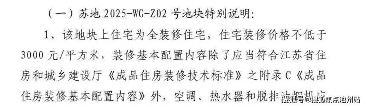 根据地块出让要求,该地块上住宅为全装修住宅,住宅装修价格不低于3000元/㎡。