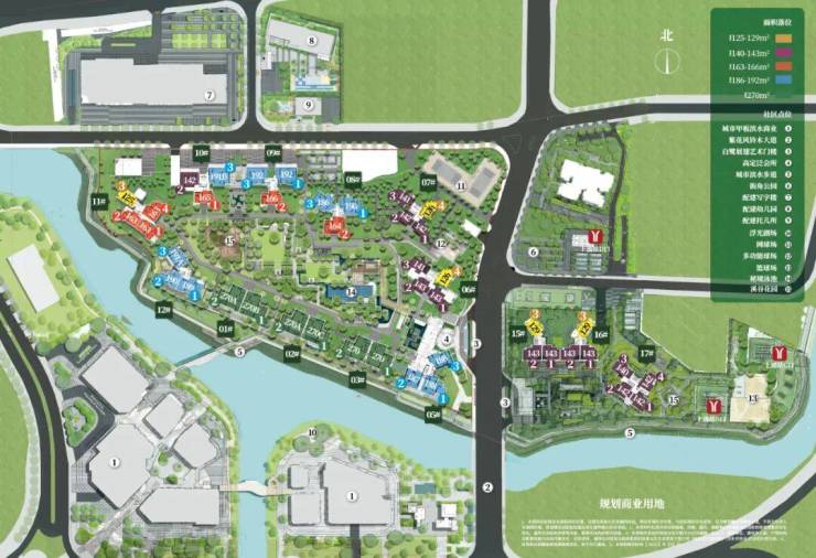 📌总览| 总占地超17万方 | 超5万方社区园林 |漫游式滨水商业 | 最高约260米东西楼间距