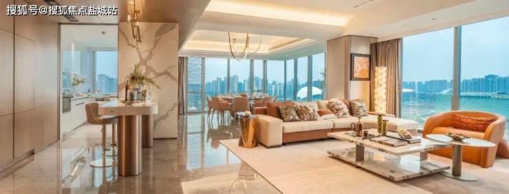 在美食区,白金沙天然石材打造的岛台,兼顾了颜值与实用性。在岛台的后面和对面,还有丰富的储物空间可以使用。这个300方空间整体非常方正,通透。南向面宽更是达到了阔绰的约16.2米,再加上全落地玻璃的设计,十分敞亮大气。顺着窗外望去,不远处的运河亚运公园更是能尽收眼底。