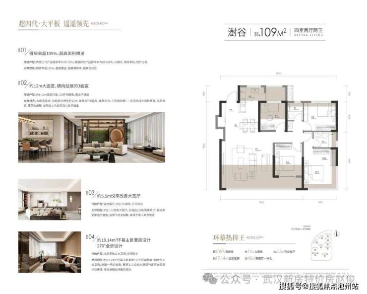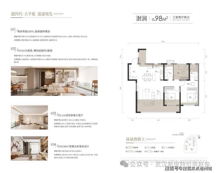 【超新质·超四代建筑大平板】 公建化立面 现代C型美学之作 特邀PTA上海柏涛,澳大利亚柏涛(墨尔本)中国合作单位,以至高水准匠造大师级立面——公建化外观,大窗墙比;大平板户型,较汉阳同面积段,面宽超15%——超四代户型:负公摊+超四代住宅大平板,得房率超105%+——户型设计,3LDK以上量级空间设计