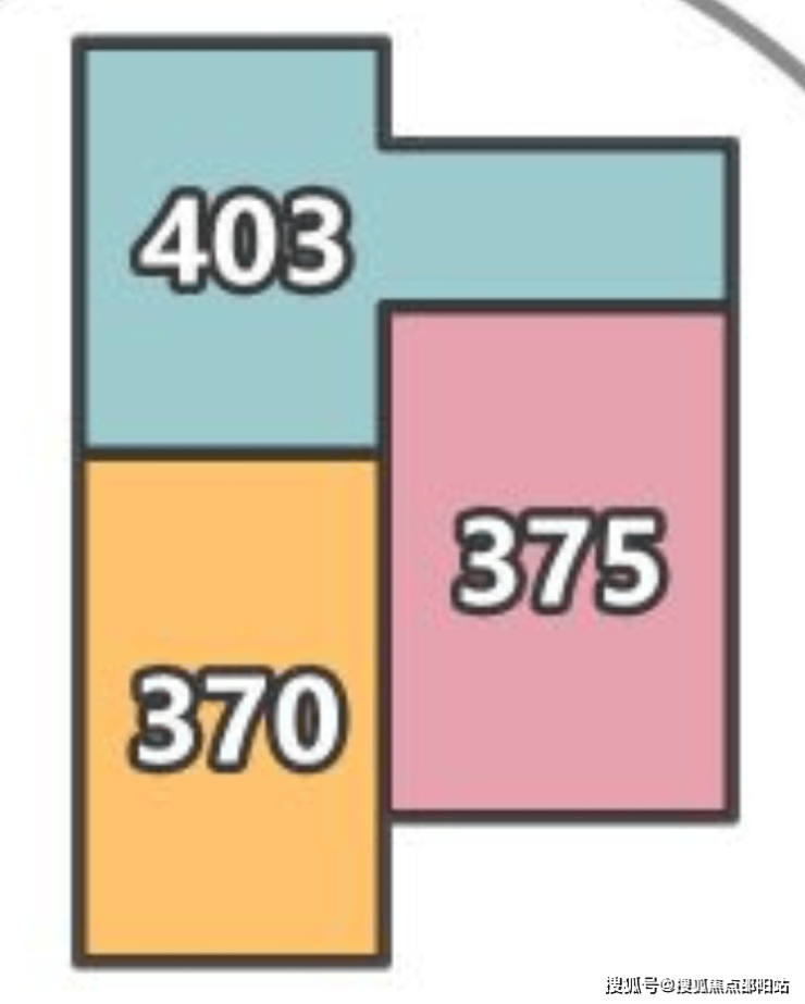 375户型(东南向)客厅约9.45米进深,开间6米,阳台开间约14.45米,4房(3套房)