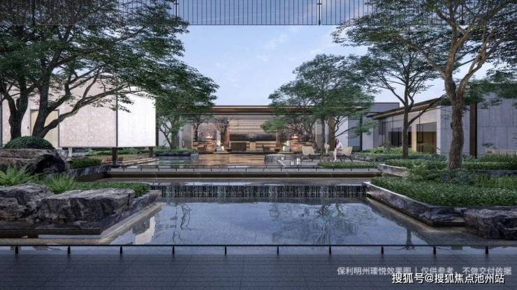 宁波海曙保利·明州瑧悦府的园林设计以中式园林意境为蓝本,融入东方禅意,营造出一个体验式园林。项目内的山水、花鸟、亭台水榭相互映衬,让业主在忙碌的生活中,也能找到一片宁静的天地。