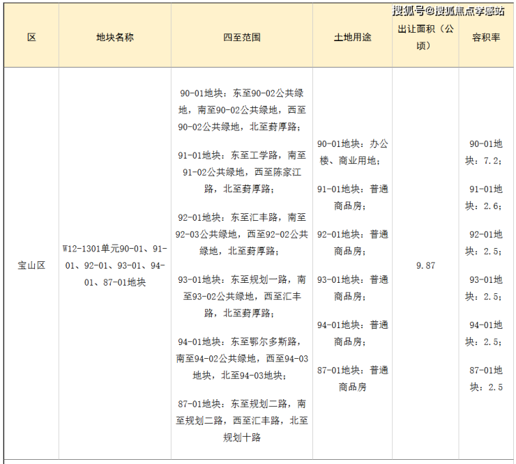 6月,宝山区W12-1301单元90-01、91-01、92-01、93-01、94-01、87-01地块就将出让了。