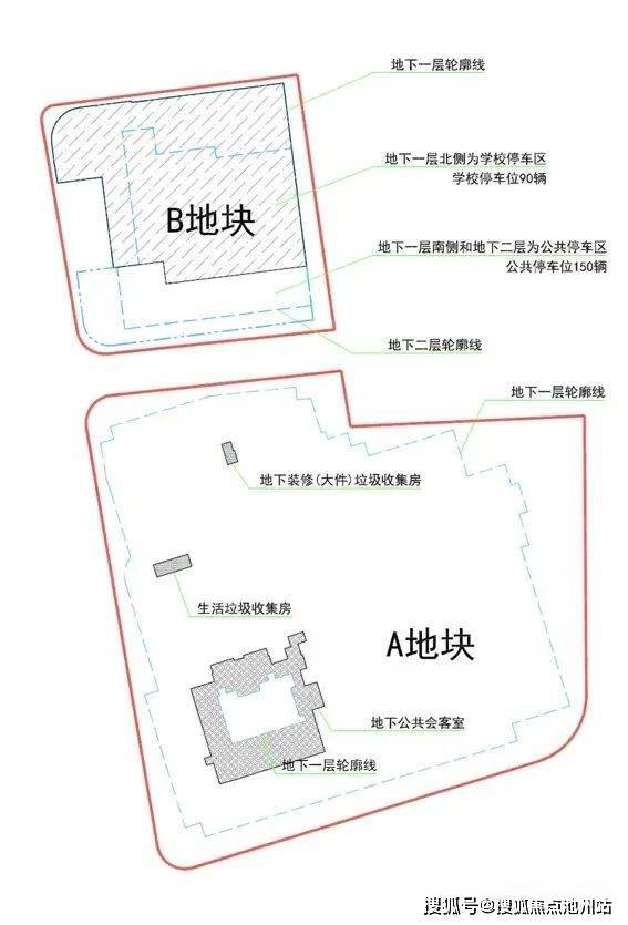 项目分 A、B 两个地块,南边的 A 地块规划了 5 栋住宅,北边的 B 地块是教育用地,规划了一所 18 班制的小学。