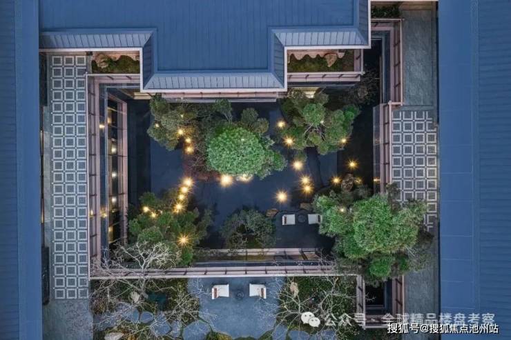 合院萃取传统庑殿顶飞檐弧度,以铝材转译“如鸟斯革,如翚斯飞”的古典神韵。外立面创新采用一体成型仿石铝板一体板,复刻天然石材质感,确保历久弥新的同时,让每一栋建筑都成为承载东方美学的当代地标。