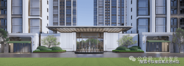 一庭:【瑰丽门庭】酒店式豪宅美学界面,以金属细节和石材彰显贵气,定制化艺术铺装彰显入口门庭;奢华大挑檐,中心设计艺术水景,增加入口仪式感;结合门楼落客等候区设计山水庭院,由恢宏门庭到自然花园,华丽向自然的过渡,彰显豪宅礼序。