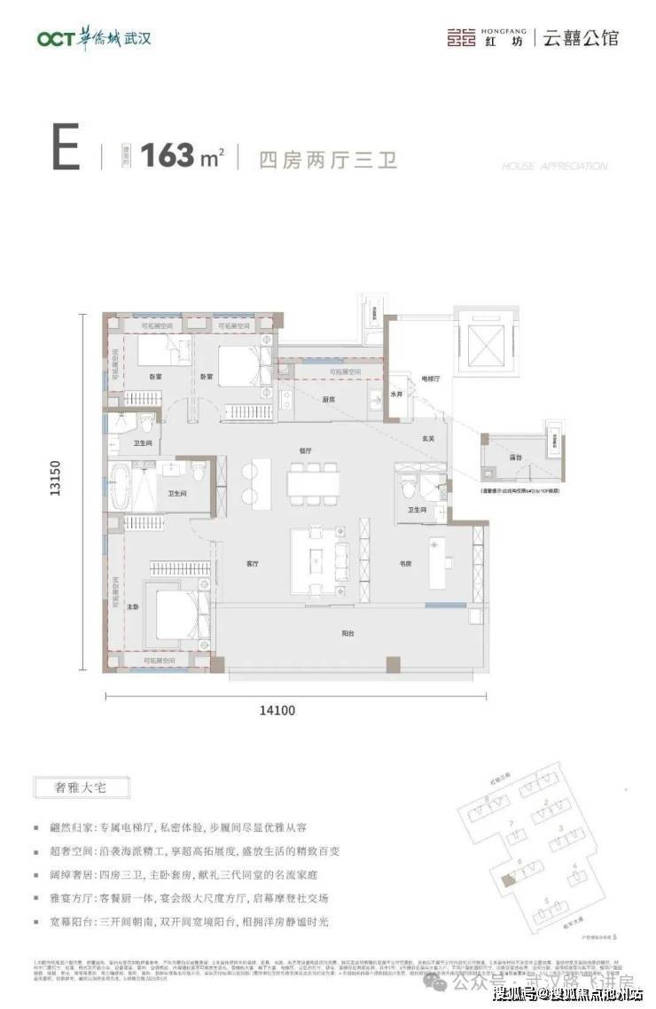 华侨城红坊|云囍公馆预计推出建面约119㎡-166㎡四房洋房、小高层产品,容积率仅1.63,样板间开放参观购房享四重优惠,云囍公馆地块新品开盘前圈存2万抵10万,到访送价值129元安可充电宝。