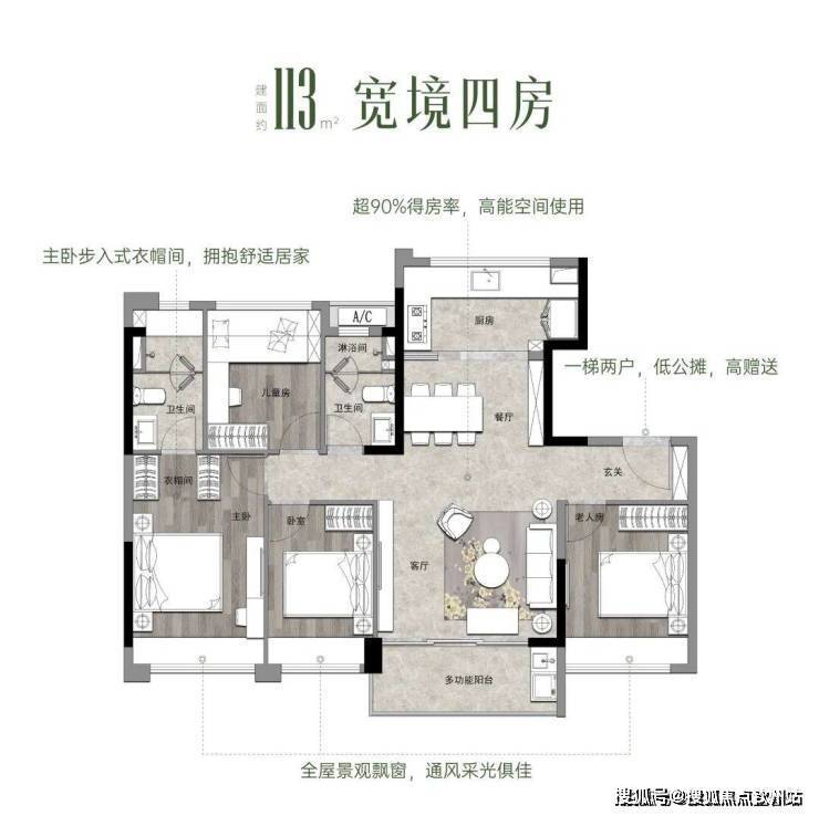 对于想要追求改善的购房者而言,建面约98㎡的四房户型足够你达成一步到位的终极目标。