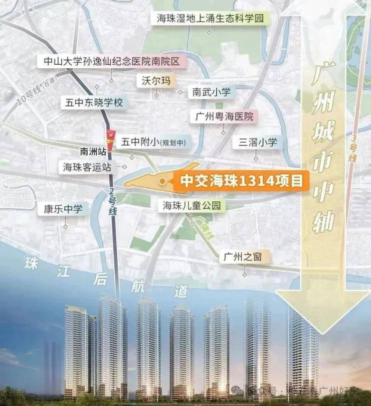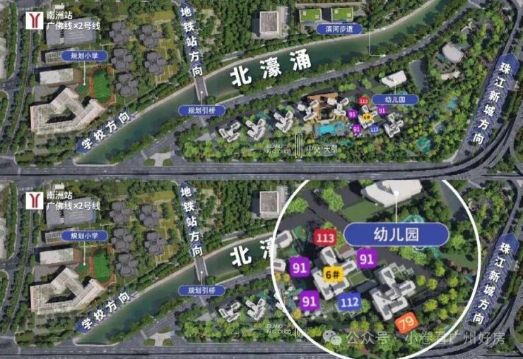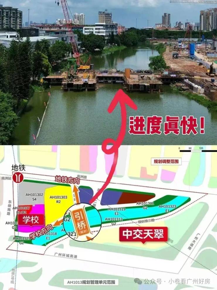 项目距离2号线和广佛线交汇的南洲站直线距离仅约500米,目前北濠涌规划引桥已开建,计划于今年内建成并开通,届时项目通达南洲地铁站将更为便捷。