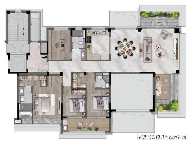 市面上常见的四代宅,通常只专注于露台空间的打造,室内空间实则与普通住宅差异有限。