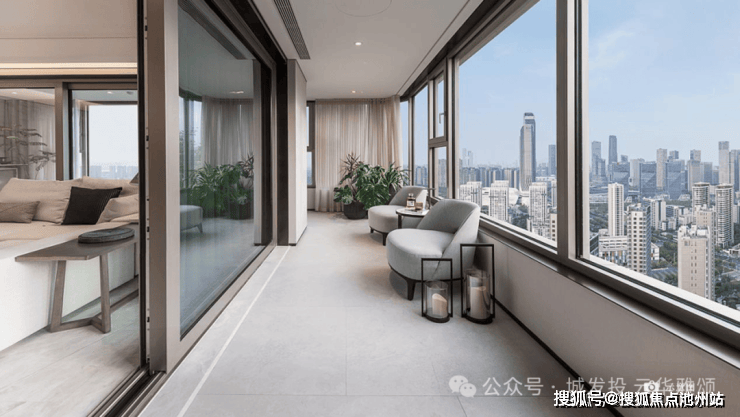 南向立面超高窗墙比,大面积的落地窗设计,赋予外立面晶莹通透的效果,消解建筑内外边界感,为室内纳入宽幕视野和丰沛采光,打造极简轻盈的视觉体验。售楼处电话400-8787-098接通后输入5678【营销中心】