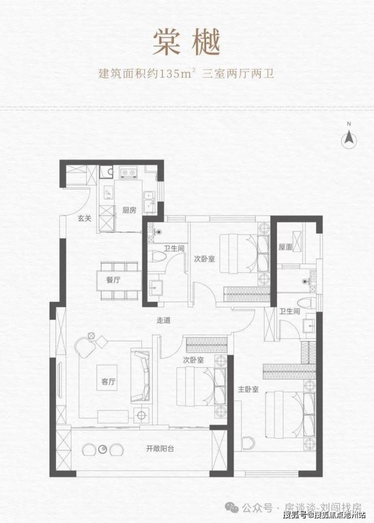 135㎡改善四房(IMAX 级观景阳台),得房率高,空间布局兼顾功能性与舒适性。