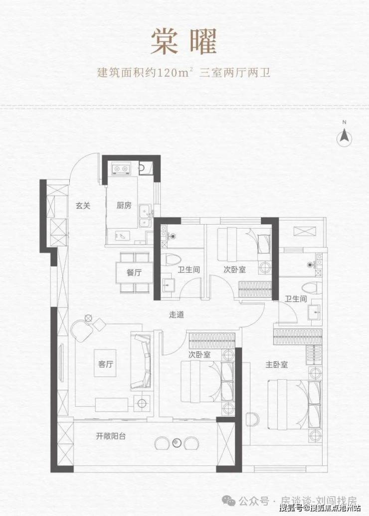 120㎡经典三房(三开间朝南、双卫设计)、