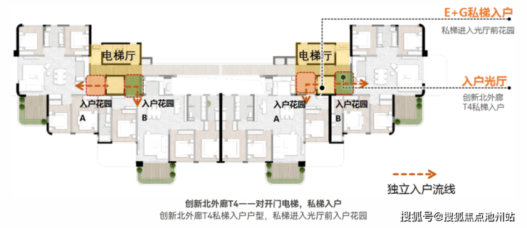 多维优化的人居体验:优化归家、入户等细节,单元入口采用“单元光厅”,提升地下大堂采光通风效果;“无风雨归家”体系实现全程无阻归家;架空层融入“自然泛会所”概念;T2首层花园户型提供别墅级入户体验。