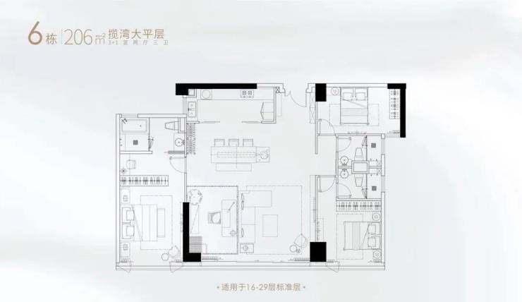 6栋望江公寓,总高43层,15、30楼是避难层,24年6月交,中区(16~29层:206、232、261㎡,5梯4户);低区(3~14层:98、146、143、151、161 ㎡,3梯7户,在售10、11楼)