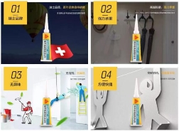 4、粘接晶钢板等。 本产品用于将覆面的材料、木料、石膏板、镜、玻璃、橡胶、壁脚板、百叶窗、门槛、窗台、界桩、支柱、接线箱、各类人造材料、观赏石器、瓷砖固定在混凝土。
