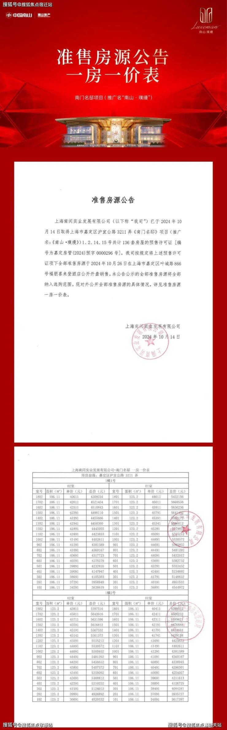 南山璞缦售楼处营销中心:400-000-0460转6666✔✔✔去年10月24日,上海第三批次土拍中,南山以总价175602万元成交嘉定工业区南门社区JDC1-0801、JDC1-0802单元44-08地块,地块出让面积34703.9㎡,容积率2.3。溢价率0%,楼板价22000元/㎡,装修标准2000元/㎡,房地联动价46000元/㎡。