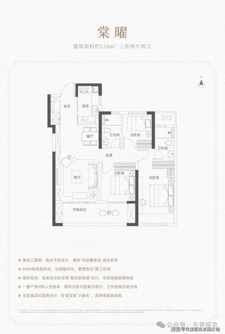 1、建面约120平米的三室两厅两卫;
