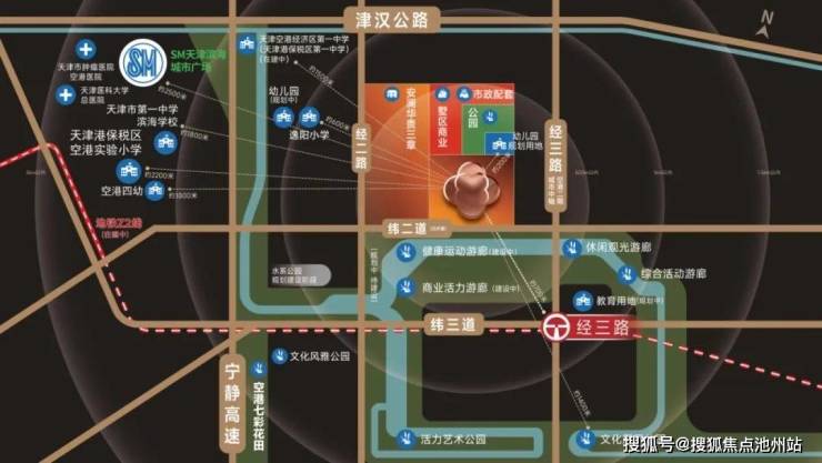 绿城·桂语安澜于此水岸墅区之中,1km内对望水系公园,近享逸阳空港小学、幼儿园(规划中)、地铁Z2线(在建中)等,3km内空港经济区第一中学(在建中)、SM天津滨海城市广场、双三甲医院、天津港保税区空港实验小学、七彩花田等丰富配套,构建出"左手繁华、右手诗意、优教为邻"的宜居范本。