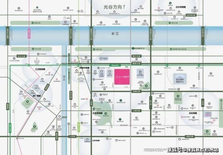 自驾:在项目门口主要有两条纵向道路,即鹦鹉大道和晴川大道,其中晴川大道可以直达汉口汉正街,而鹦鹉大道与内环线、二环线、新二环线连接处都有匝道口,不仅可以直达汉口核心、还能快速到达武昌核心,通过鹦鹉洲长江大桥和杨泗港长江大桥到武昌方向均是快速路。