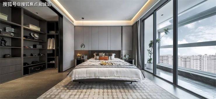 卧室自是最舒适宁静的私密空间。在风格都市现代的床上铺陈松软舒适的床品,听一曲蓝调爵士,深陷温柔的梦想,编织最绚烂的美好梦境。梦醒时分,踱步窗外阳台,依靠在吧凳上吸取最新鲜的清晨的气息,享受属于都市不可多得的自然与恬静,回首,是最爱的人的笑颜,也许便是人世间最幸福美好的境界。