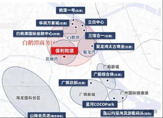 现有的广百广场距离项目仅几百米,花地湾几个楼盘也都有底商,未来还有万汇天地的大体量商业中心,周边汇集广州首家华润万象城(在建)、聚龙湾太古商业体(在建)、广船商业体(在建)、星河COCOpark(已开业)