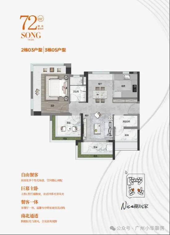 总价低、朝向好、户型靓,是它的卖点,首推建面71-87平三房,现在加推70-100方的三-四房