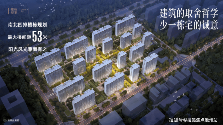 项目南北四排楼栋规划,最大楼间距约53米,阳光风光兼而有之。在建筑的取舍哲学中,敬献生活的诚意。