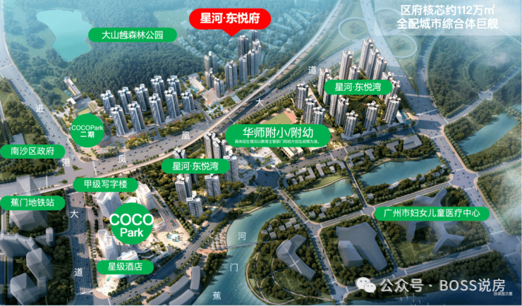 星河 COCO Park:项目毗邻 9.7 万㎡的星河 COCO Park,该商业综合体已正式开业,内含超过 200 个品牌店铺,其中包括 60 多个南沙首店,涵盖了精品超市、横店影城、西西弗书店、POWAVE 健身等多种高端业态,能够满足居民购物、娱乐、亲子、休闲等多样化的消费需求。