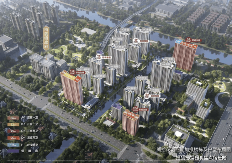 建筑上,朗拾花语售楼处电话: 400-000-0460转6666【预约热线】☎✅的18幢17-26F高层建筑,撷取“斐波那契数列”黄金比例,以疏密有致、高低有序的空间形象,成为梅陇新的城市天际线。