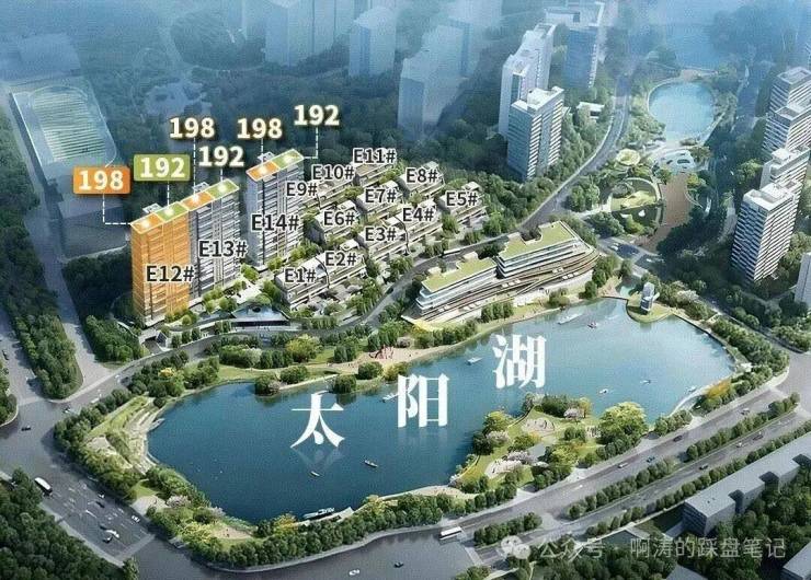 三期约190㎡大平层都是全南向一线望太阳湖,距湖最近约40米