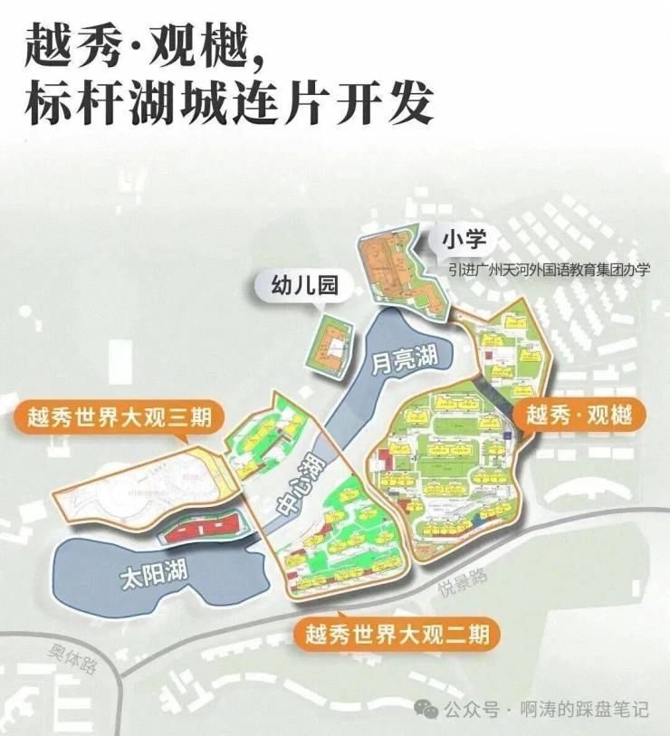 从开发模式来看,在去年拿下世界大观一期地块以后,越秀又接连拿下二三期地块,总地价就破百亿,得以拥有国内少见的市中心+临湖可连片开发区域。