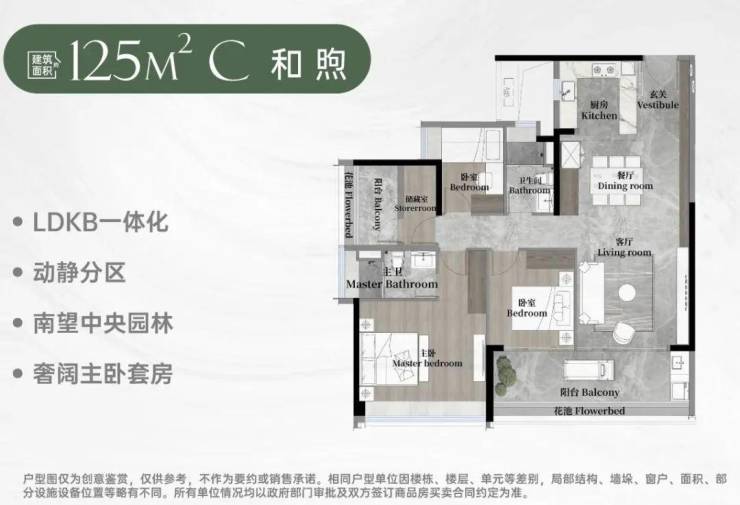 125平方和颂:(3+1)室2厅2卫,超大阳台