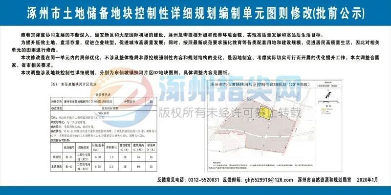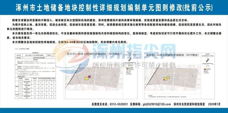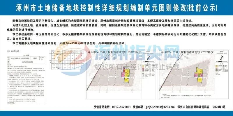 公示时间自2020年1月24日—2020年2月22日(30天)。如有意见或建议,请于2020年2月22日前来函向涿州市自然资源和规划局反馈。