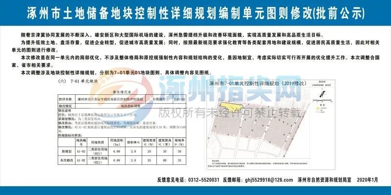为提升低效土地、盘活存量,促进企业转型,促进城市高质量发展;同时,按照较新规范要求强化教育等各类配套用地和建设规模,促进居民高质量生活,因此对相关单元的图则进行修改。现将规划有关内容在涿州网站和相关单元地块公共场所进行批前公示,广泛征求公众意见及建议。