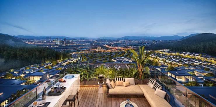 项目依山而建,坐享25000亩古浪山原山生态资源,以1.1超低容积率打造纯粹墅居。42-146米的高差地形,形成层层退台观景视野,户户拥揽山景庭院、星空露台,重塑“出则繁华、入则静谧”的峰境生活。