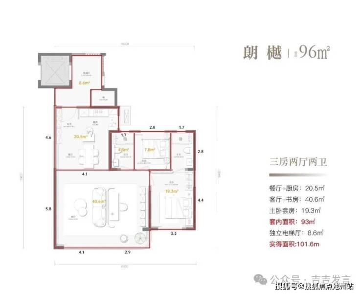 为33层设计,三梯四户配置,每户都有独立电梯厅,居住私密性与仪式感双在线。从东到西依次分布119㎡-96㎡-96㎡-119㎡,仅128户。