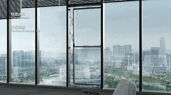 平行外推开启设计,可在四周形成均匀的通风缝隙,即便在风雨天气下也能实现良好换气效果。系统在高层建筑中兼顾通风效率与气密保温性能、开启状态下极高的防坠落安全特性,真正做到“风雨无阻、通风无忧”。