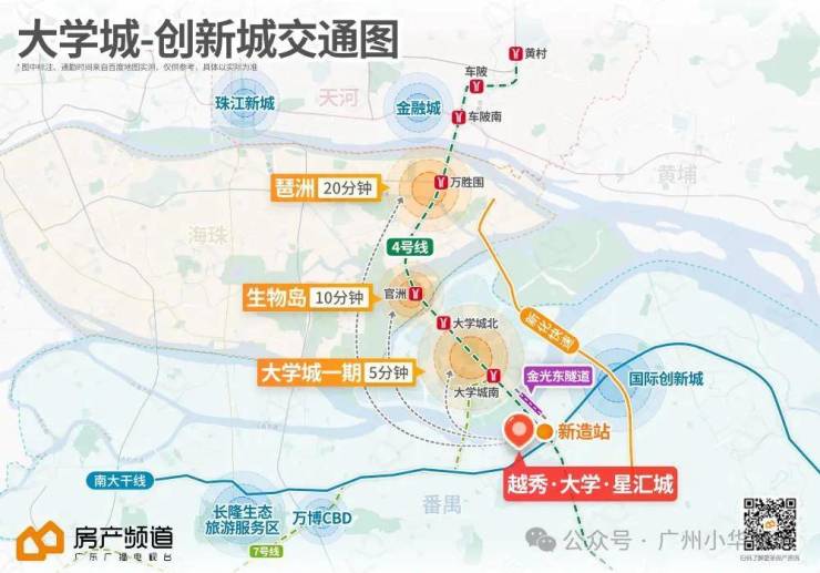 · 一脚油门金光东隧道(在建中):无缝衔接大学城,15分钟到达琶洲,25分钟金融城