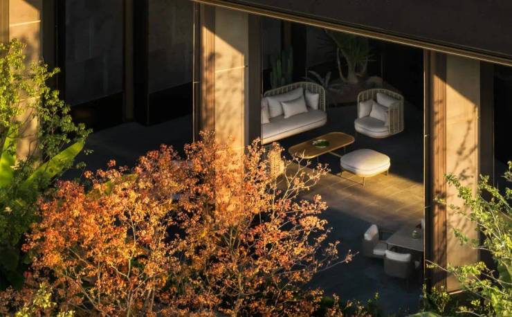 于昭设计的9米挑高的双会所,极致艺术审美的巅峰,配合着新加坡JTL景观做的沿河室外下午茶,佩戴安达仕酒店徽章的小姐姐在提供着未来居住体验的安达仕下午茶。