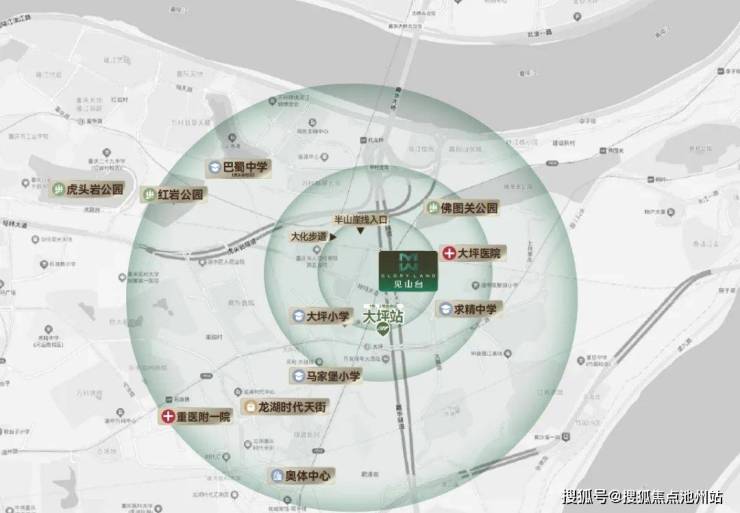 「见山台」位于大坪板块的核心,这里是重庆的地理几何中心。它扼守着渝中半岛的咽喉,如果把五大传统商圈连成圈,那么大坪就是这个圆圈的正中心。