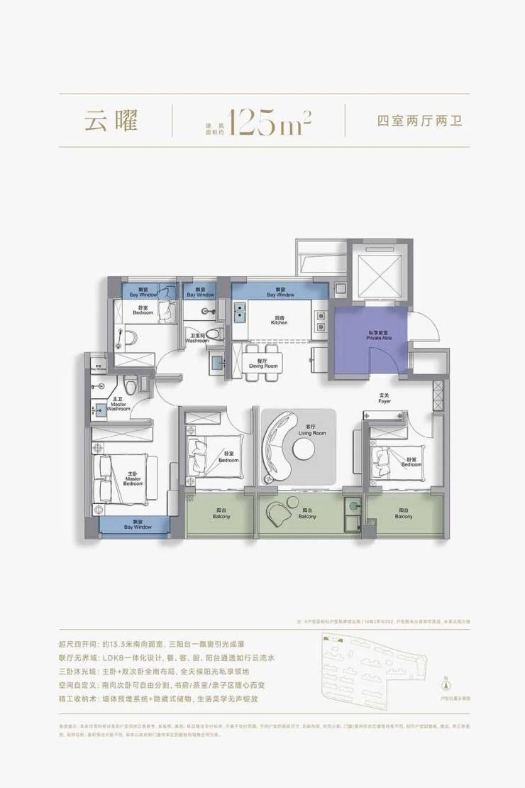 建面约125㎡云曜:奢尺四开间,全面迭新生活想象力