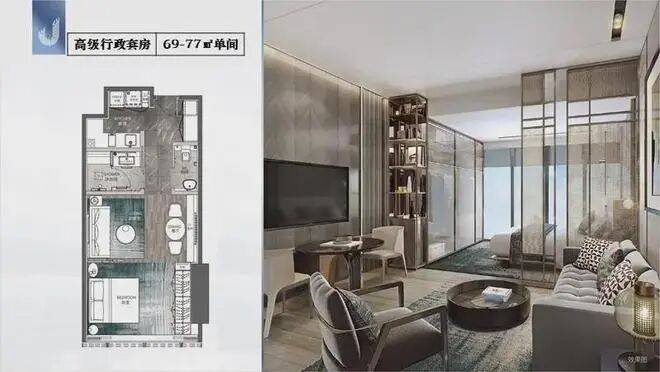 :高级行政套房(69 - 77㎡单间);尊贵行政套房(106 - 140㎡一房);CEO 行政公馆(118 - 141㎡二房);总统行政公馆(180㎡三房)