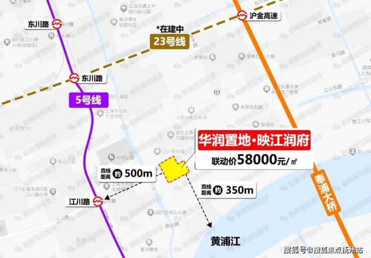 「华润置地·映江润府」距离5号线江川路地铁站直线距离仅约500米,距离黄浦江直线距离仅约350米,通勤优势+滨水社区,几乎没有对手!