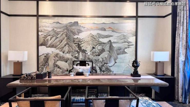 通过优化后的“L型”空间排布,实现了三面有园林环绕,前庭空间尺度非常大,一进门就是约10.2米的大横厅,气派十足,采光也做到极致,日常起居极为从容舒适。