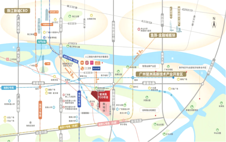 项目与琶洲西区总部聚集区仅一涌之隔,腾讯、阿里、字节跳动等98家总部企业形成产业集群效应。交通配套堪称“黄金枢纽”: